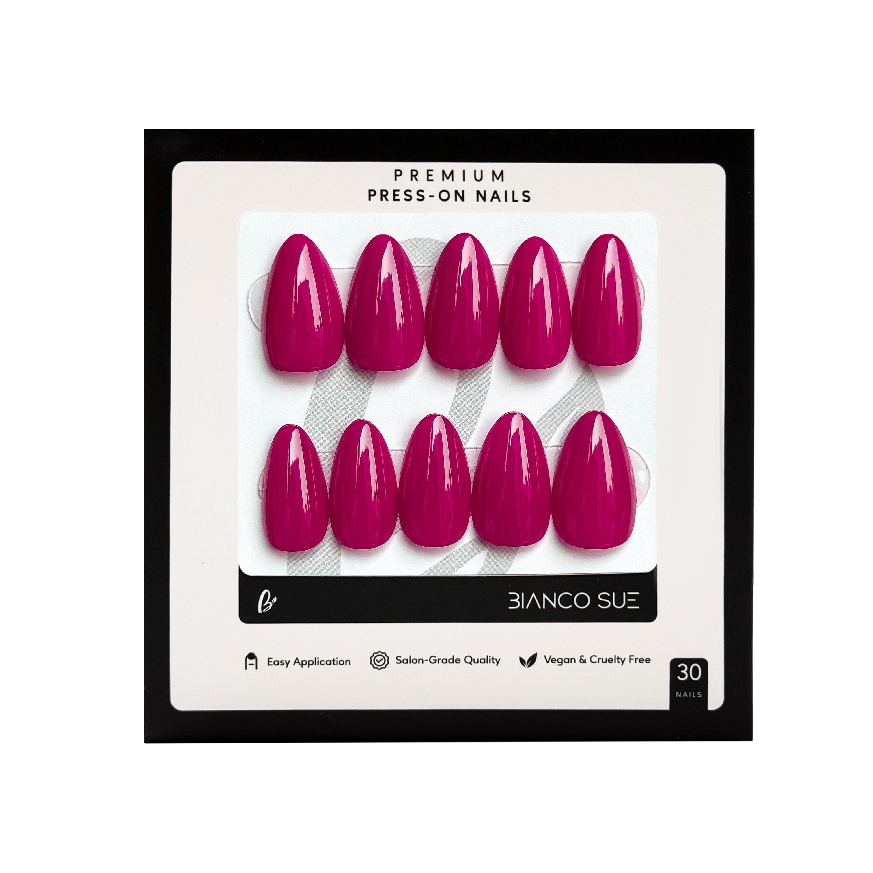 With proper application and care, Bianco Sue press on nails can last up to 2–3 weeks. For the best hold, buff and clean your nails before use and press firmly for at least 30 seconds.