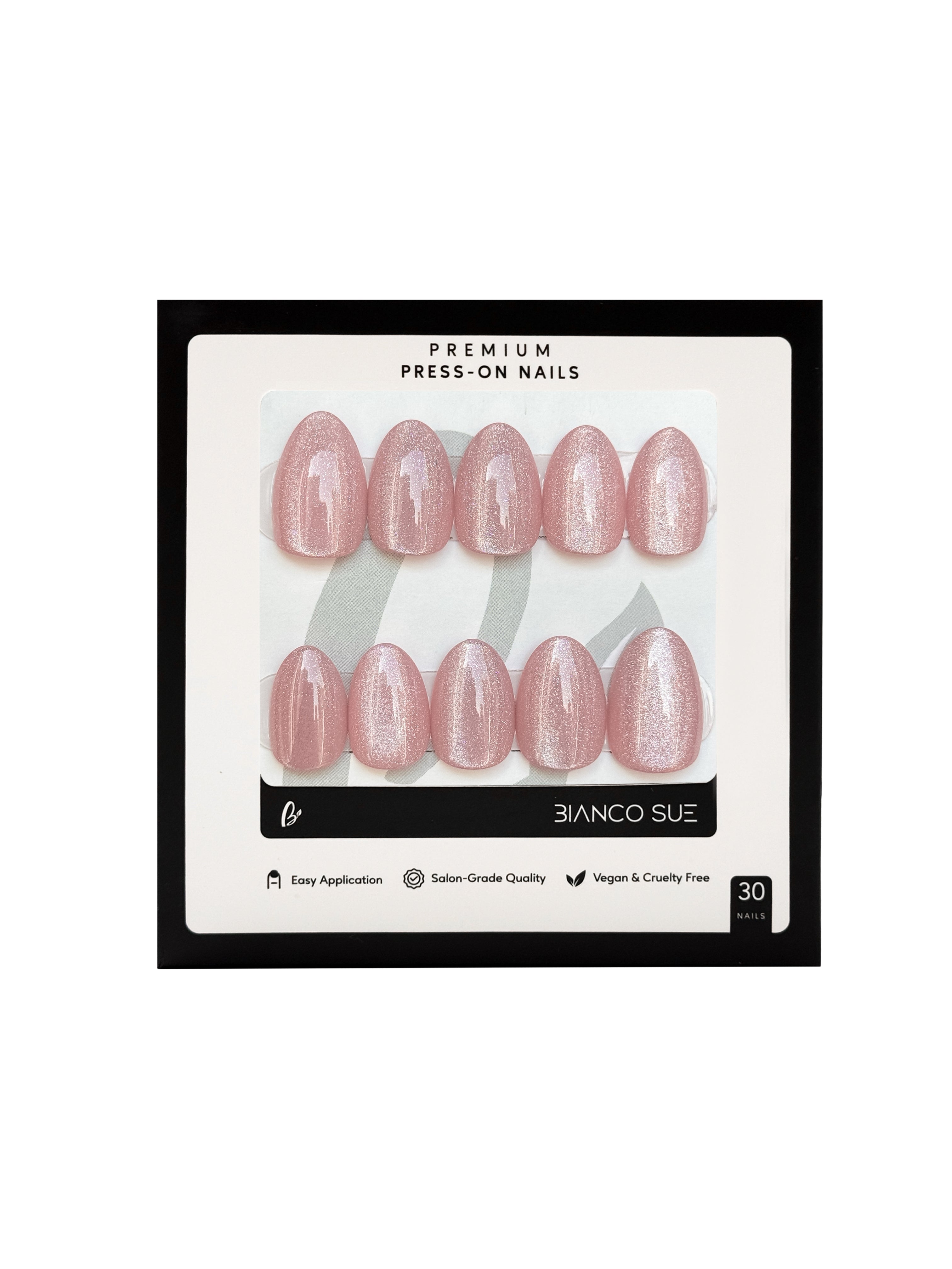 Rose Gleam – Super Short Almond Shape | Salon Quality Press-on Nails Kit – Shimmery Pink Nails